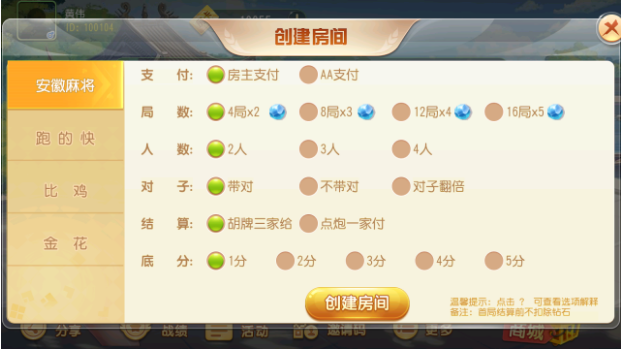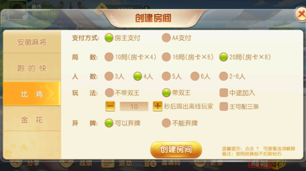 包含游戏:安徽麻将,跑得快,比鸡(钩机),金花
