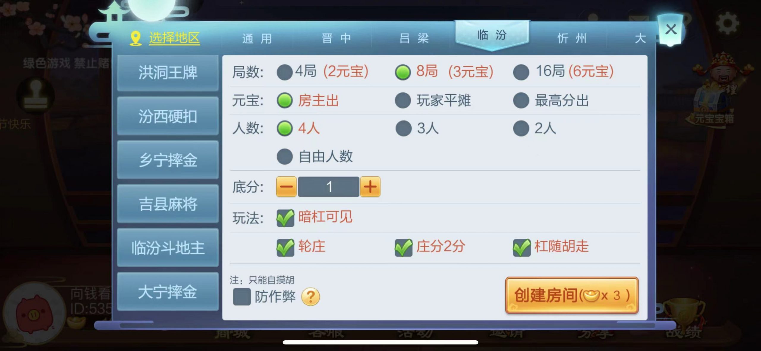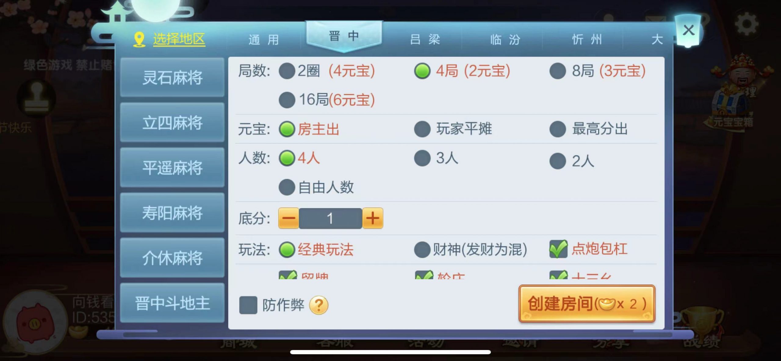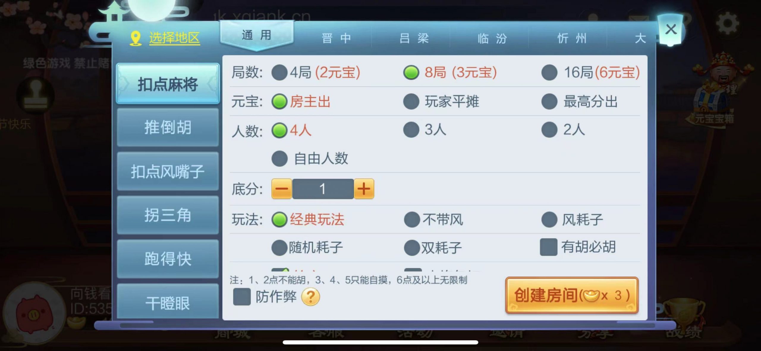 棋牌房卡大合集 山西玩法。带机器人-带控 带外链,可定制其他地方玩法