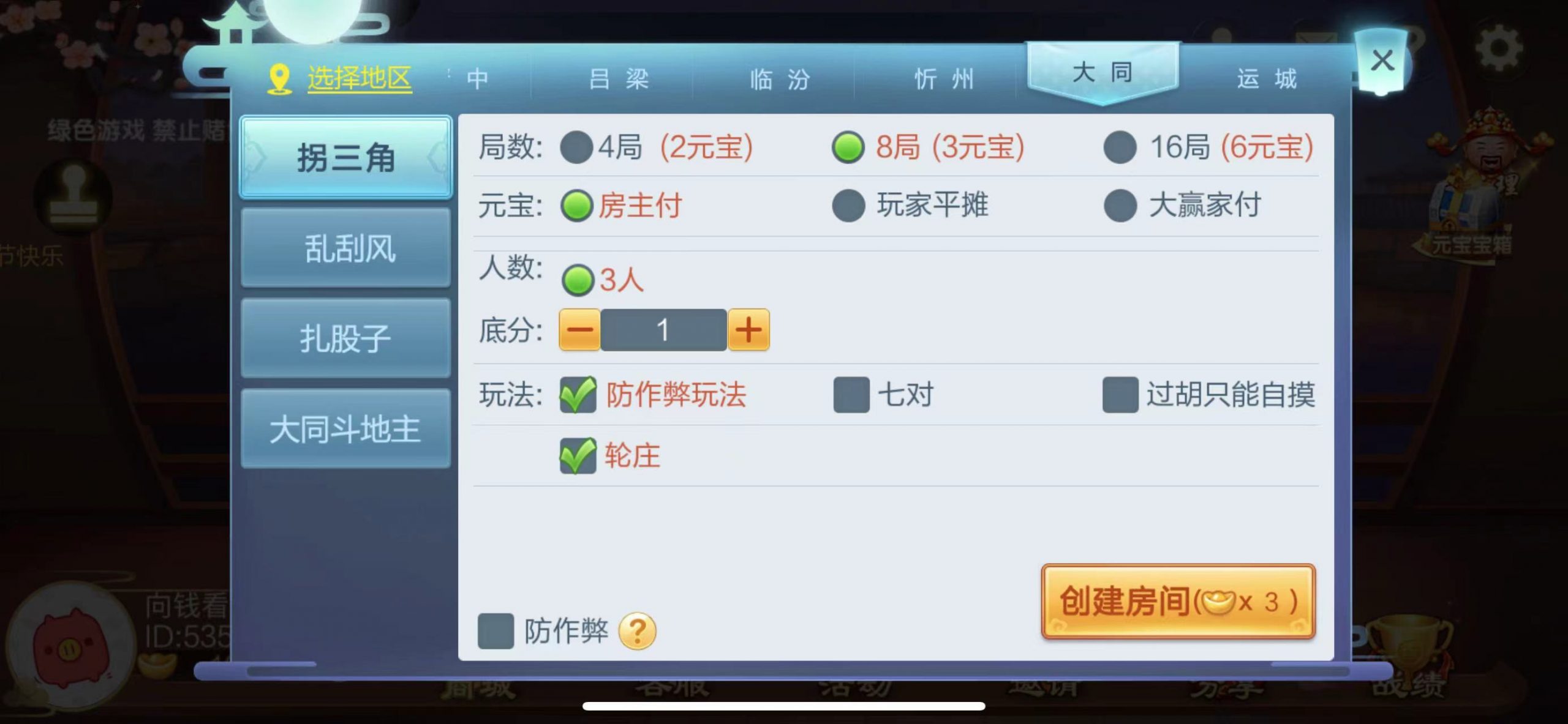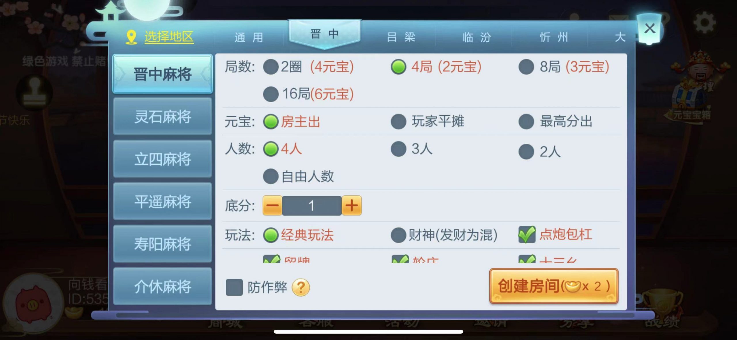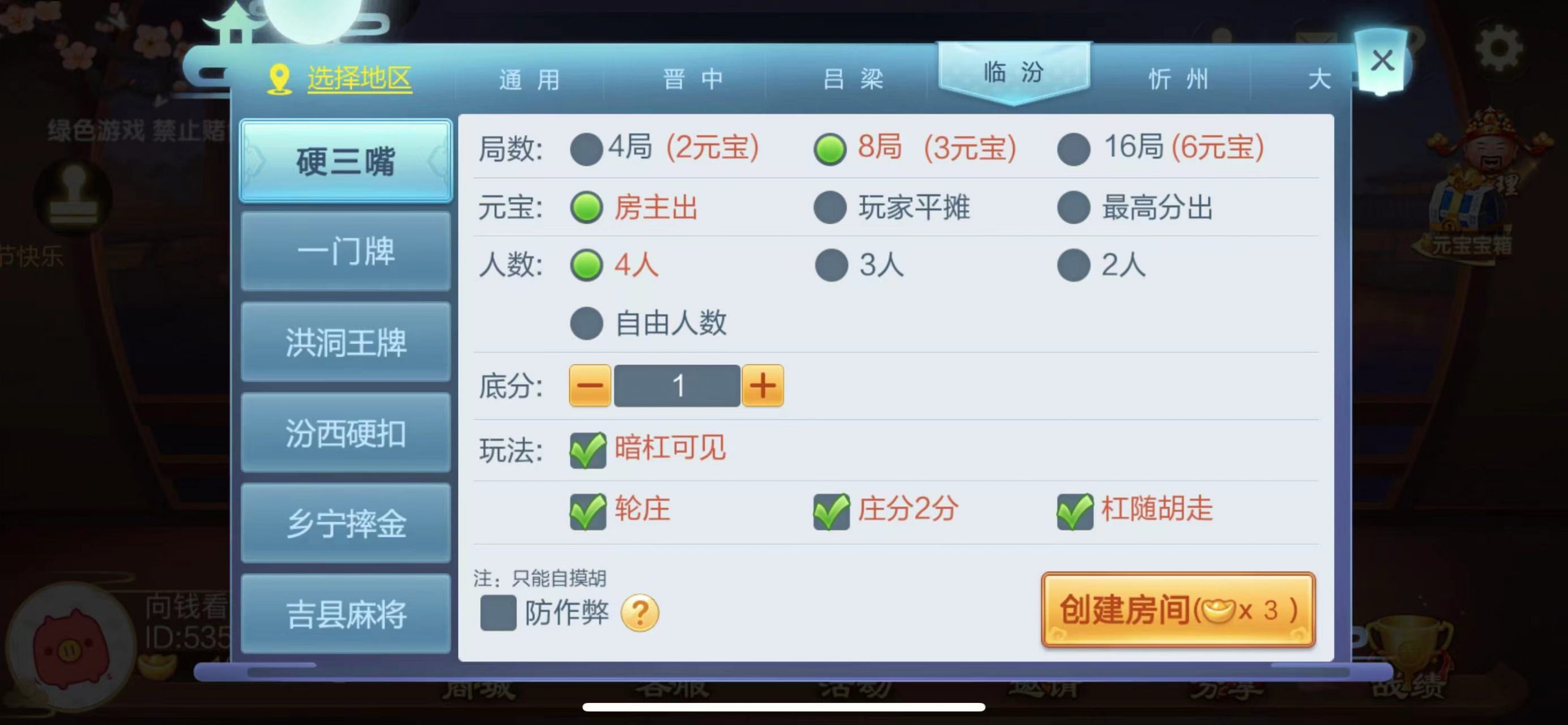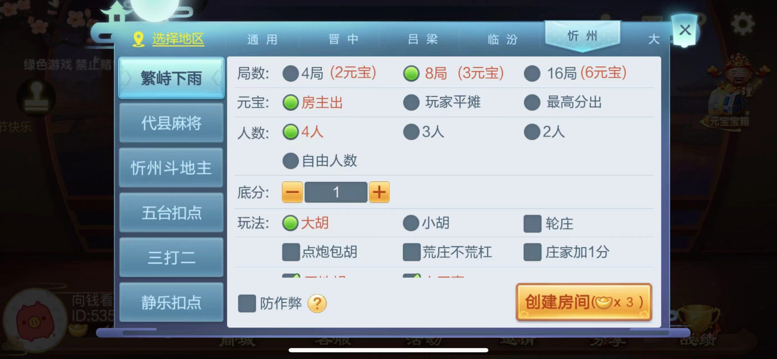 棋牌房卡大合集 山西玩法。带机器人-带控 带外链,可定制其他地方玩法