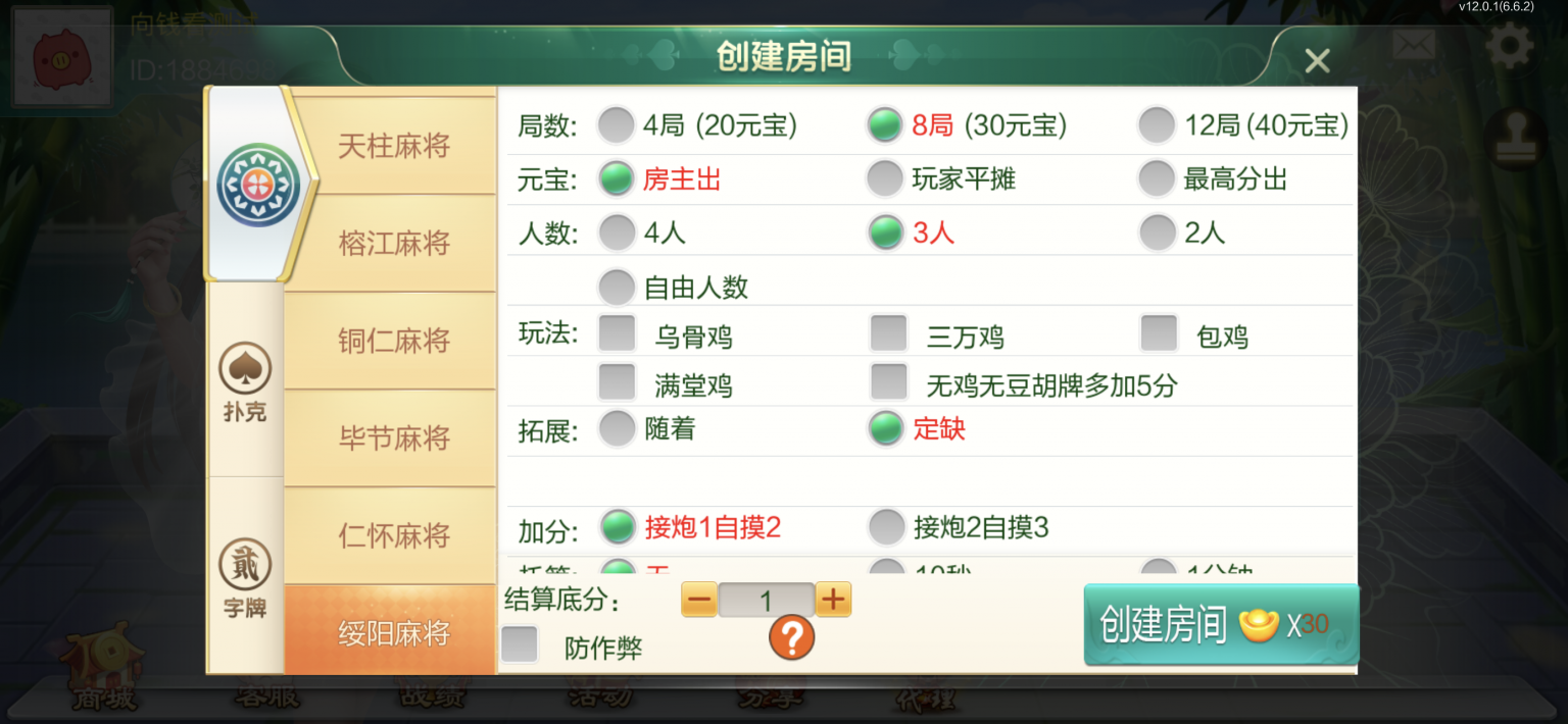 棋牌房卡大合集 贵州玩法。带机器人-带控,可定制其他地方玩法