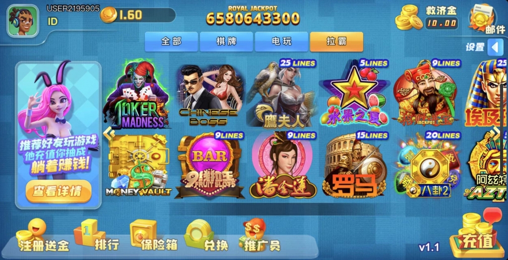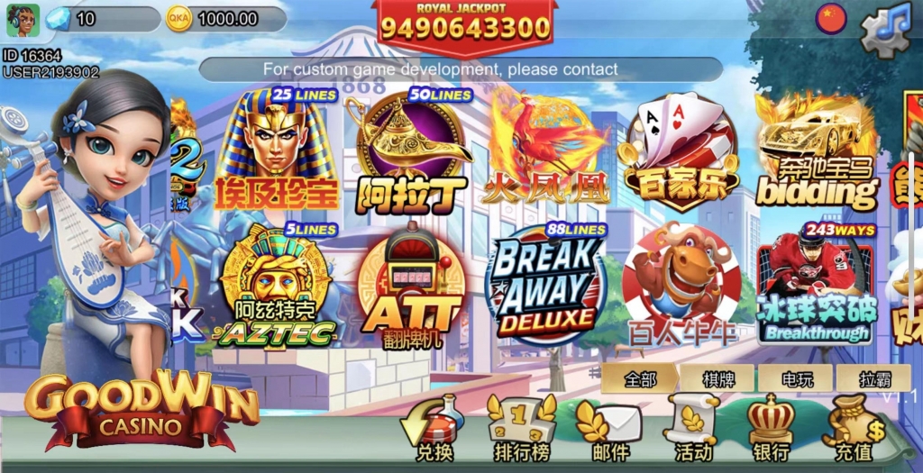 国际版电玩城,多款大厅风格,子游戏70款!,10国语言切换。一条龙包维护