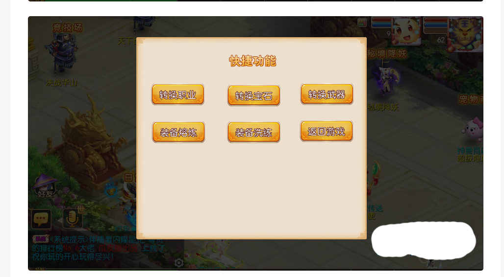 功能玩法丰富,经脉 宠物装备等。